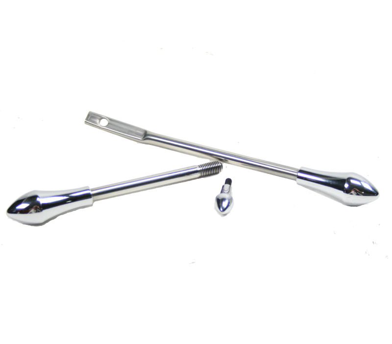 This kit includes a turn signal lever with knob, a tilt lever with knob, and a 4-way flasher knob. The turn signal lever is flattened and attaches to the column with a single screw. The kit fits 1969 and newer GM and Chrysler columns and is available in three different knob styles: Standard, Retro, and Deco (Deco style knobs are only available in polished aluminum finish).