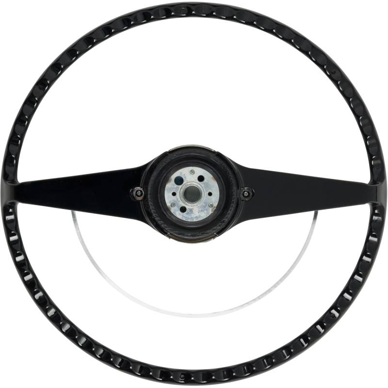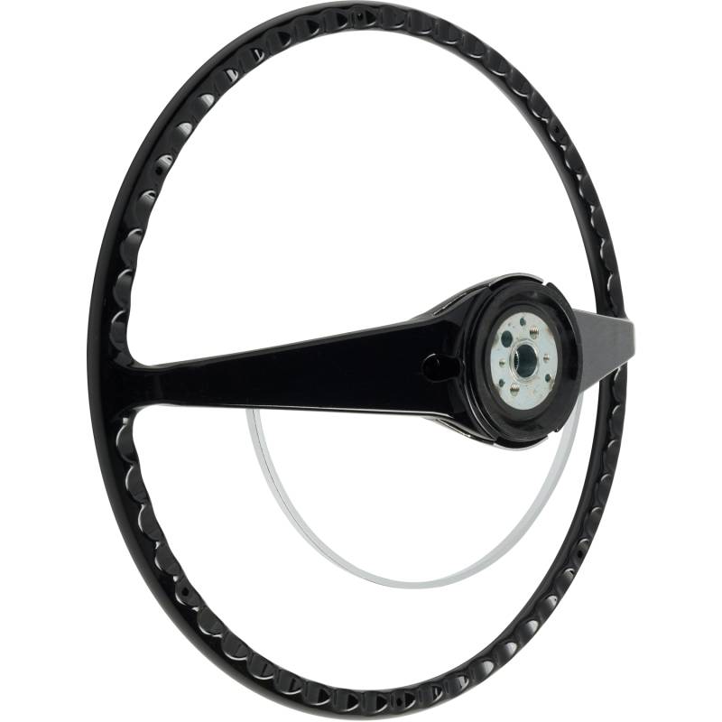 Made to fit to the original steering column using all the original horn hardware and turn signal switch parts. The American Retro wheel comes complete with a chrome horn ring and a center cap. Installation is easy - just bolt it on! Finished in black. For other colors, simply paint to match your vehicle.