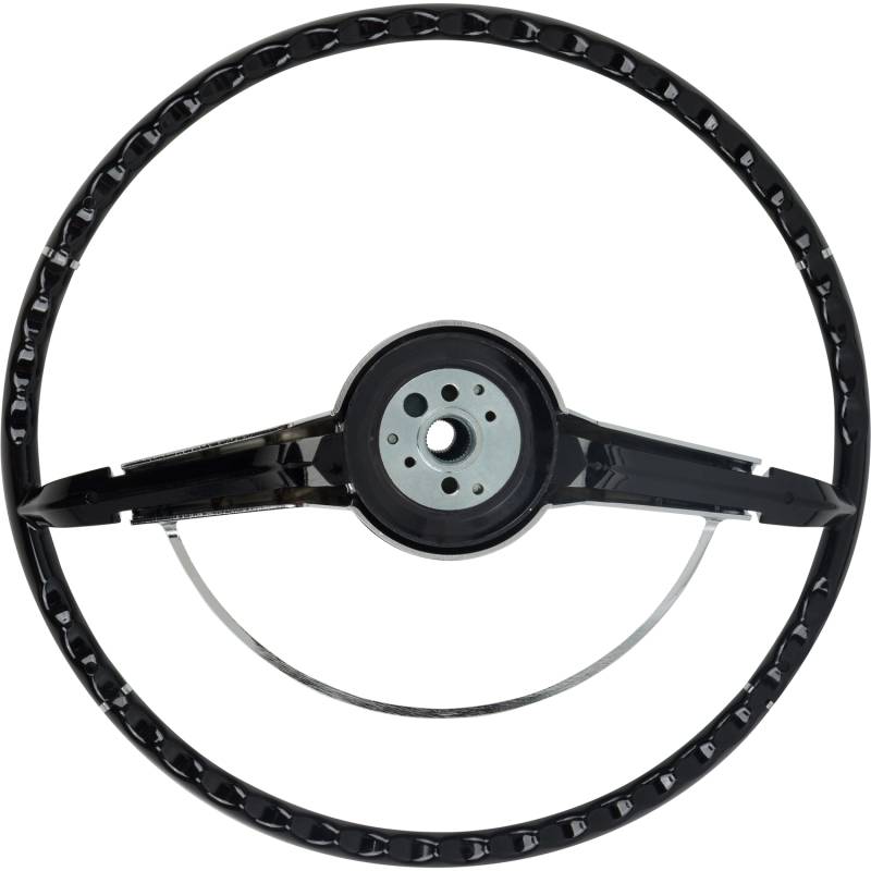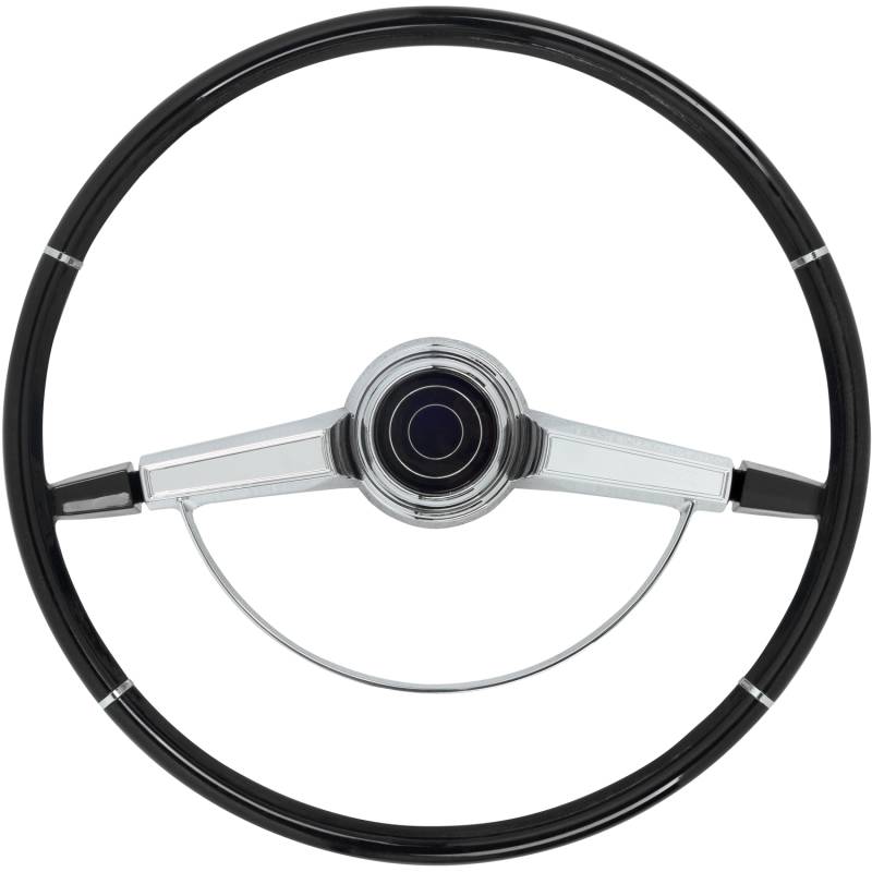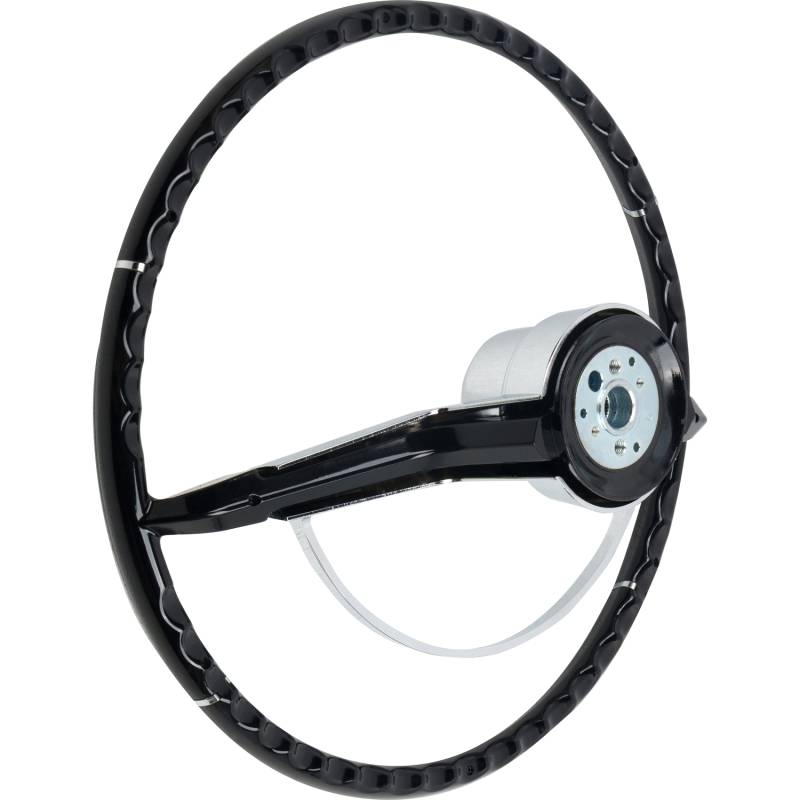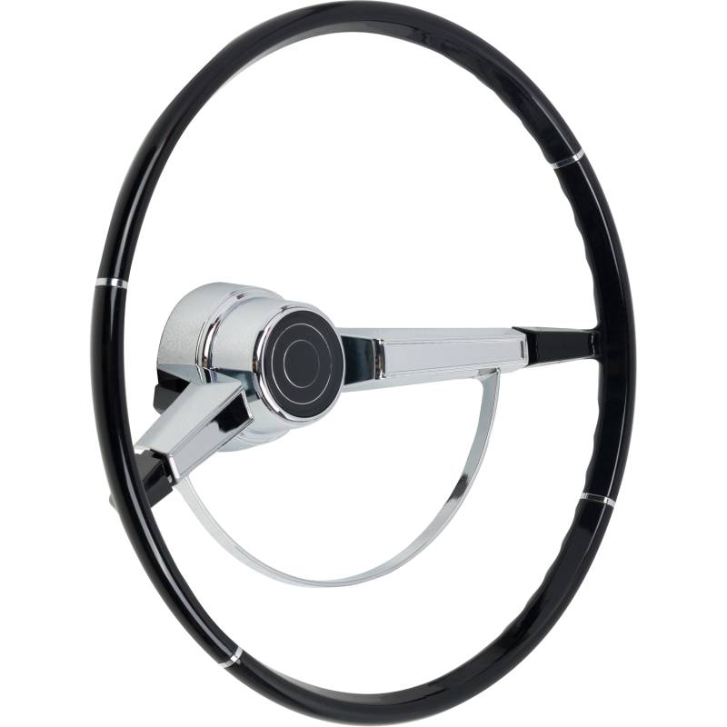 Made to fit to the original steering column using all the original horn hardware and turn signal switch parts. The American-Retro wheel comes complete with a chrome horn ring and a center cap. Installation is easy - just bolt it on! Finished in black. For other colors, simply paint to match your vehicle.