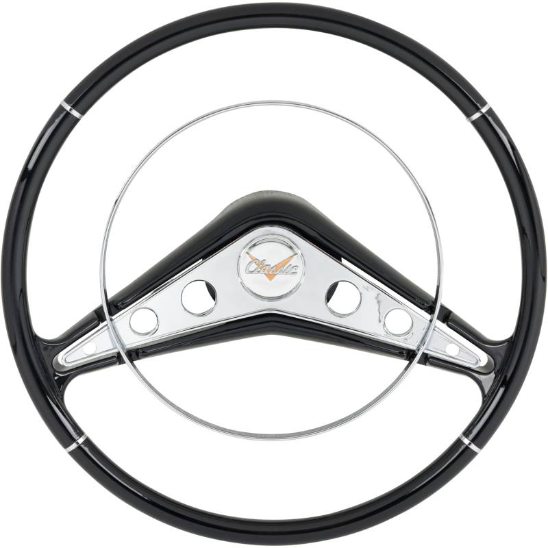 This 15-inch American-Retro steering wheel replaces the original 1958 Chevy Impala 17" stock GM wheel from vehicles of that vintage. This sporty replacement gives your car an original look, yet provides drivers the comfort and handling of a 2-inch smaller diameter modern size wheel, a benefit especially for cars converted to modern power steering. Don't wrestle with that "bus-size" steering wheel any longer! American-Retro's new smaller steering wheel is the answer!