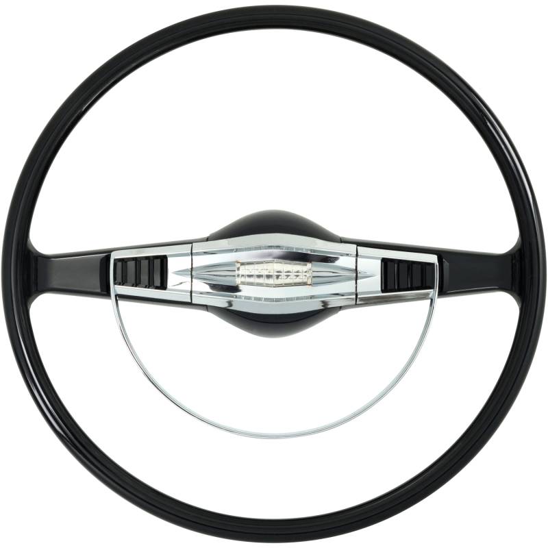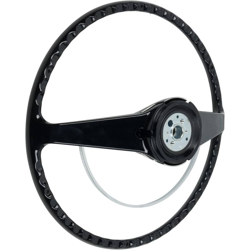 This 15-inch American-Retro steering wheel replaces the original 17" stock GM wheel from vehicles of that vintage. This sporty replacement gives your car an original look, yet provides drivers the comfort and handling of a 2-inch smaller diameter modern size wheel, a benefit especially for cars converted to modern power steering. Don't wrestle with that "bus-size" steering wheel any longer! American-Retro's new smaller steering wheel is the answer!
